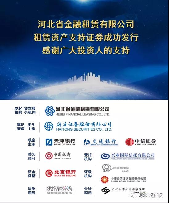 關(guān)注 | 河北金租15.65億元資產(chǎn)證券化產(chǎn)品成功發(fā)行