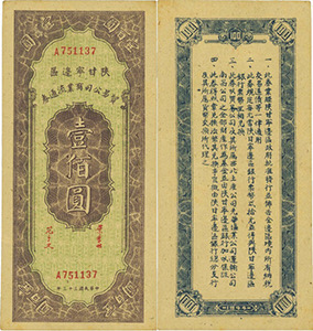 抗日戰(zhàn)爭(zhēng)爆發(fā)后,1937年9月下旬,八路軍第一二零師進(jìn)入晉西北地區(qū),創(chuàng)立了晉西北抗日根據(jù)地,建立了興縣農(nóng)民銀行。到1938年12月,開(kāi)辟了以大青山為依托的綏西、綏南、綏中三塊游擊根據(jù)地,并逐步同晉西北根據(jù)地連成一片,構(gòu)成晉綏抗日根據(jù)地。1940年5月,以興縣農(nóng)民銀行為基礎(chǔ),成立了晉西北農(nóng)民銀行,后改為西北農(nóng)民銀行,發(fā)行西北農(nóng)民幣,流通于晉綏地區(qū)。后晉綏邊區(qū)與陜甘寧邊區(qū)統(tǒng)一為西北解放區(qū),該行與陜甘寧邊區(qū)銀行合并,統(tǒng)稱西北農(nóng)民銀行,西農(nóng)幣成為整個(gè)西北解放區(qū)統(tǒng)一本位幣。從1940年5月-1948年11月,西北農(nóng)民銀行共發(fā)行貨幣15種面額,26種票樣,約3.8億張,合計(jì)約為6439億元。