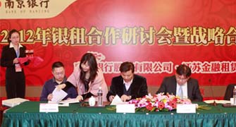 2012年2月21日,我公司代理總裁徐敏俊攜總裁助理朱彬、李寧生參加了南京銀行主辦的2012年全國(guó)銀租合作研討會(huì)。會(huì)上,公司總裁助理兼金融部總經(jīng)理朱彬就公司的已有經(jīng)營(yíng)業(yè)績(jī)、戰(zhàn)略發(fā)展布局、客戶資源定位、與南京銀行合作經(jīng)驗(yàn)、未來(lái)融資需求…